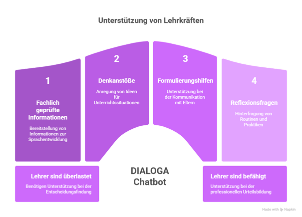 DIALOGA unterstützt diese Situationen mit fachlich fundierten Informationen und mit Formulierungshilfen, ohne die professionelle Verantwortung der Lehrkraft zu ersetzen.