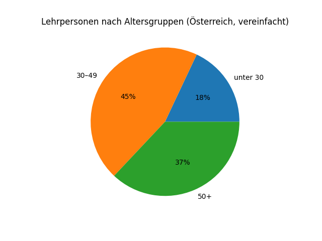 Der Generationswechsel betrifft nicht alle Schulen gleichermaßen. Die Altersstruktur unterscheidet sich deutlich zwischen den einzelnen Schularten. Der größte Teil des Lehrpersonals arbeitet an Pflichtschulen. Rund 76.000 Lehrkräfte unterrichten in Volksschulen, Mittelschulen und Sonderschulen. Deutlich kleiner sind die Gruppen an allgemeinbildenden höheren Schulen sowie an berufsbildenden mittleren und höheren Schulen mit jeweils rund 22.000 Lehrpersonen. Berufsschulen bilden mit knapp 5.000 Lehrkräften den kleinsten Bereich im System.