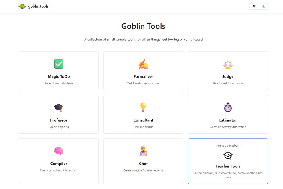 goblin.tools bietet eine Reihe spezialisierter Funktionen, jede im Fokus auf eine bestimmte Alltagshürde: