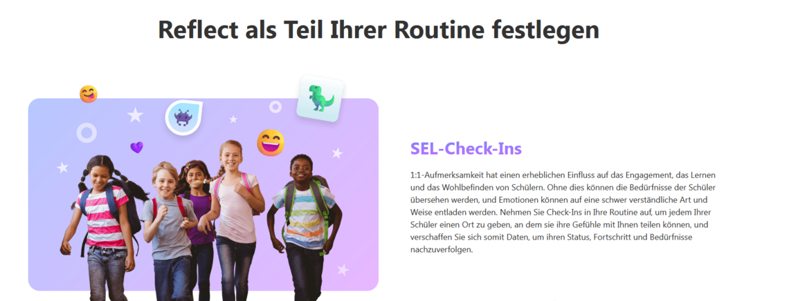 Reflect ist vielseitig einsetzbar – vom niedrigschwelligen Emotionscheck in der Volksschule bis zur reflektierten Selbstwahrnehmung in der Oberstufe.