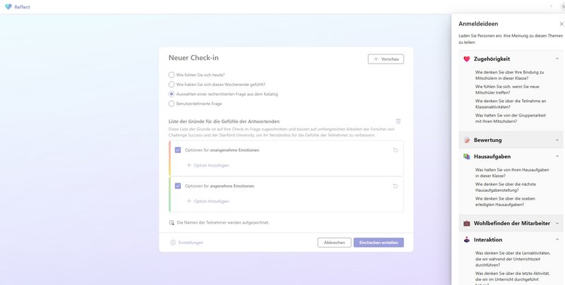 Microsoft Reflect ist ein digitales Tool, mit dem Lehrpersonen regelmäßig das Wohlbefinden und die Stimmung ihrer Schülerinnen und Schüler erfassen können.
